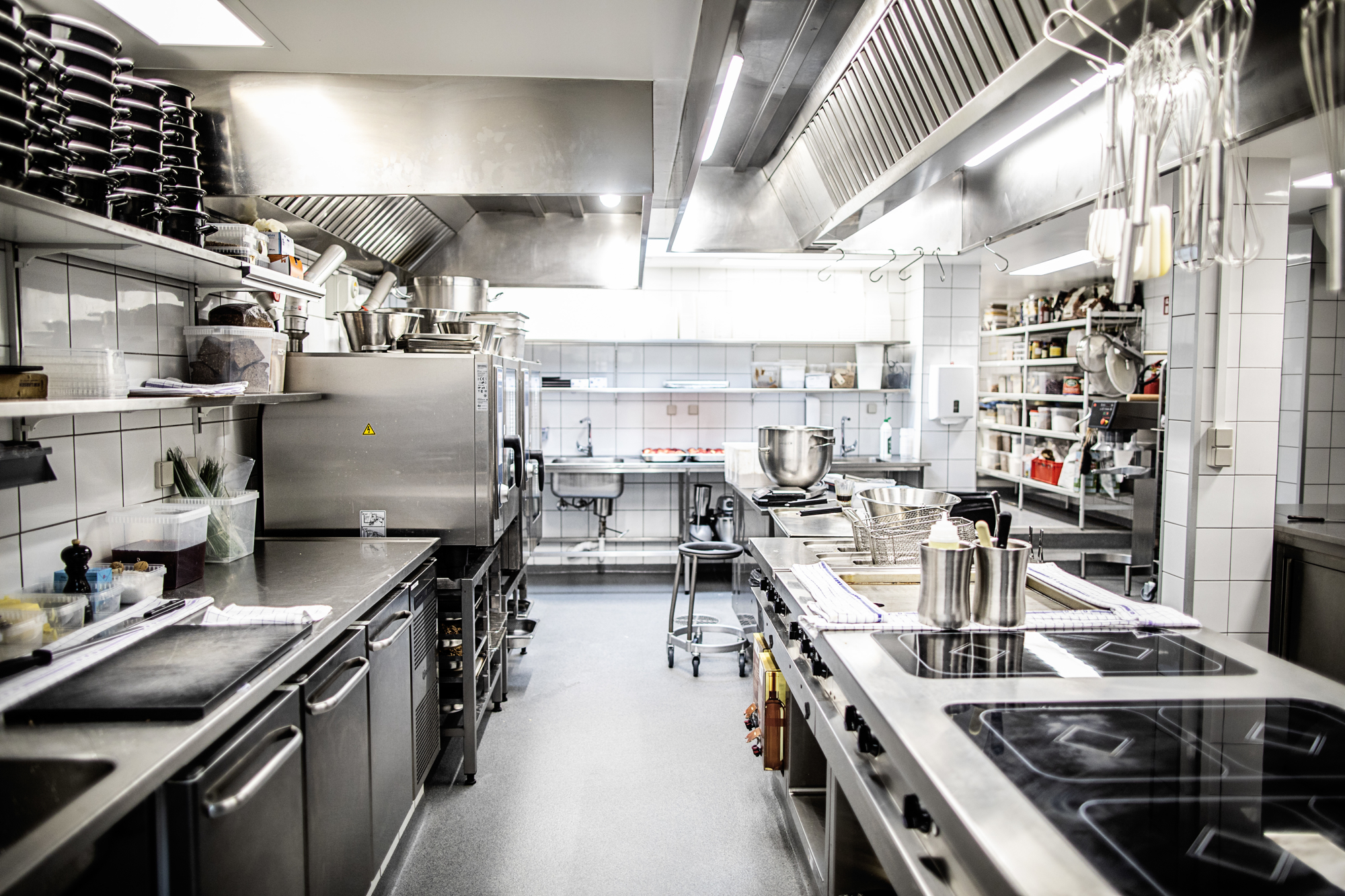 Det gamle køkken blev ryddet, så Per Plesner fra BENT BRANDT havde mulighed for at starte forfra med alt: Rational ovne, MKN komfurer, Hobart opvask specialborde og koldt køkken. Med en placering midt i huset og tæt på gæsterne var ventilationen vigtig, og den stod sin prøve i en meget hektisk sommer i 2020.