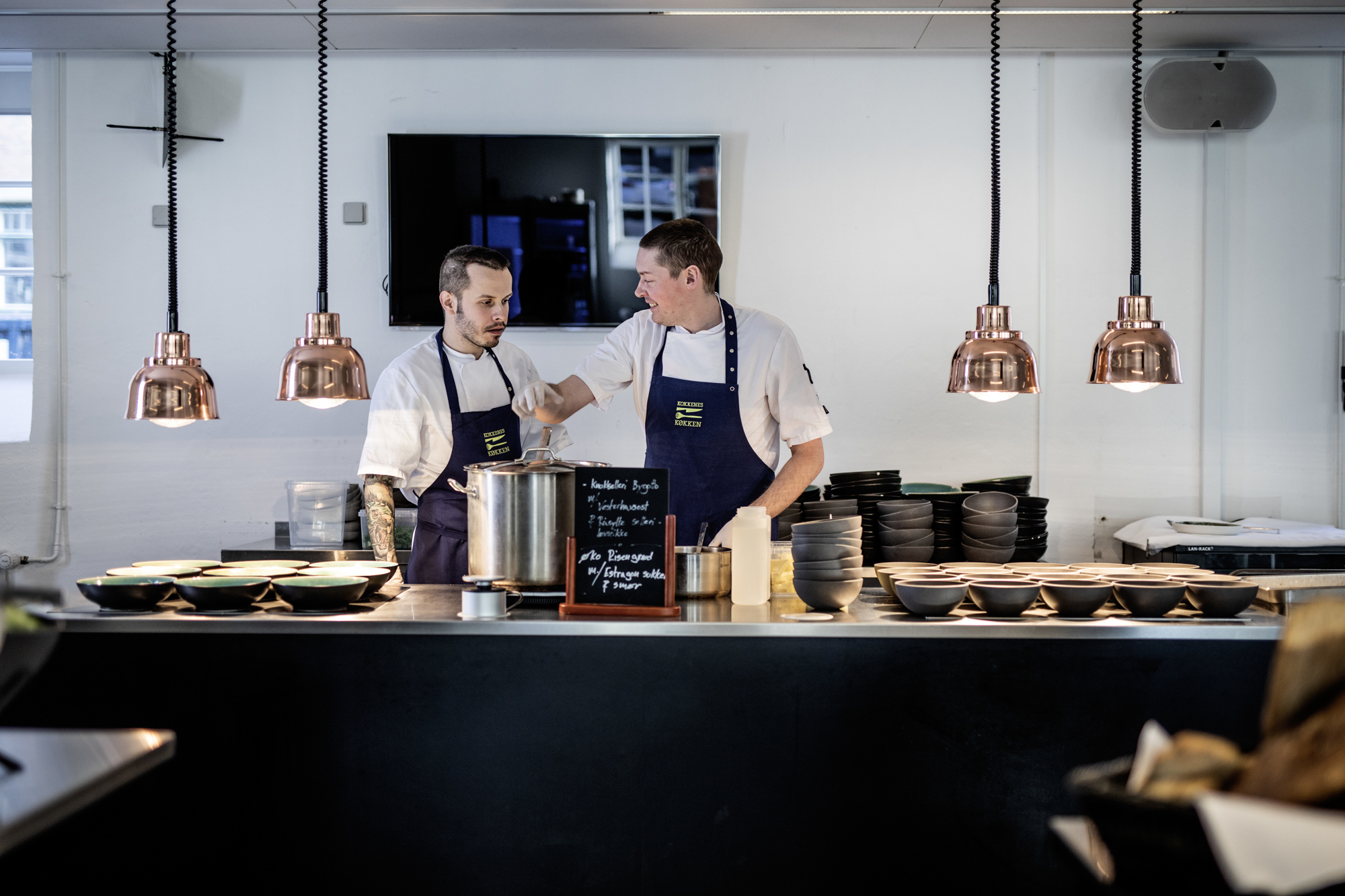 "Det fungerer! Der er ingen ventetid ved disken, vi har mere end halveret vores kødforbrug, og der er tid og en naturlig anledning til en snak," fortæller Casper, som derfor også nøje har udvalgt kokke, der kan li' at være på.