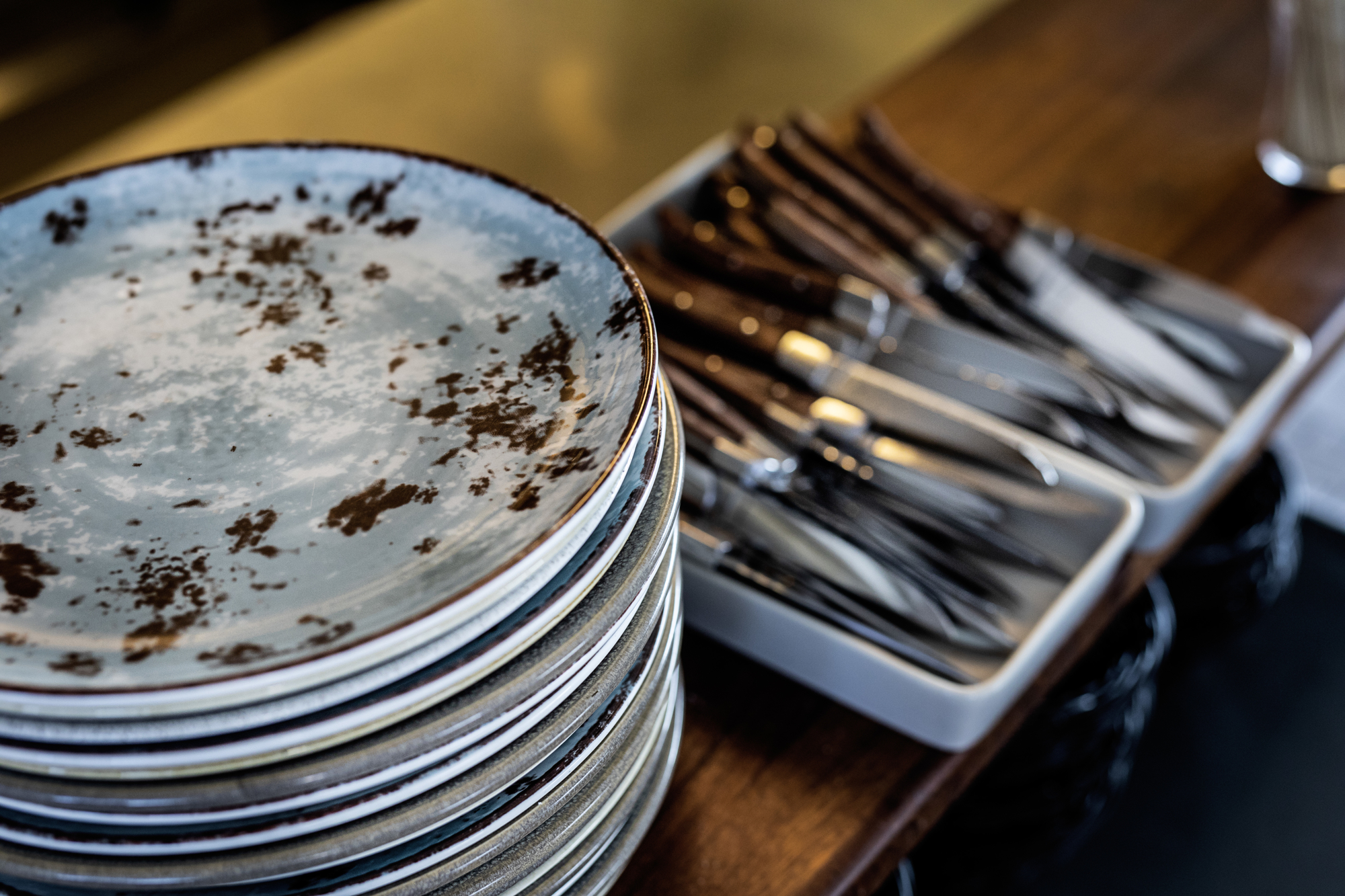 "Køkkenet i Spisehuset er meget lille, så vi forproducerer i pakhusets køkken," fortæller Thomas. "Omvendt holder vi kun åbent i pakhuset for selskaber fra oktober til påske og flytter i den periode café- og a la carte-serveringen til Spisehuset."