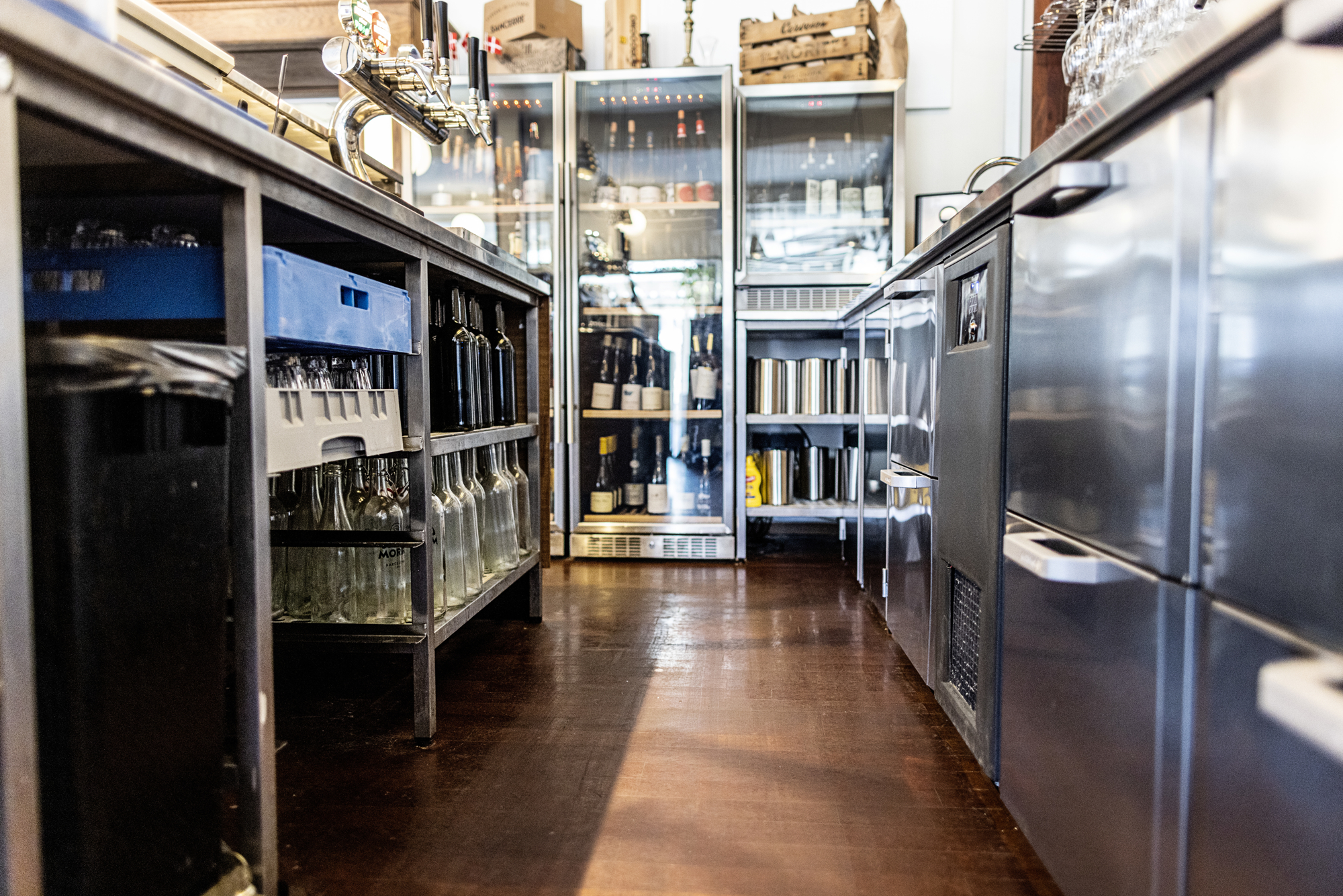 Alt er indrettet med gennemtænkte detaljer fra starten. ”Jeg har arbejdet i mange barer, og jeg ved, hvor vigtig det er, at disken er indrettet, så man skal bevæge sig så lidt som muligt,” fortæller Søren Jessen. ”I den populære verandabar tilgodeser indretningen, at 2 medarbejdere på få kvadratmetre kan ha’ forrygende travlt, selv om der er meget lidt plads mellem frontdisk og backbar. Og i restaurantens største bar kan tjenerne hente vin uden at gå i vejen for medarbejderne bag disken. Det fungerer…!”