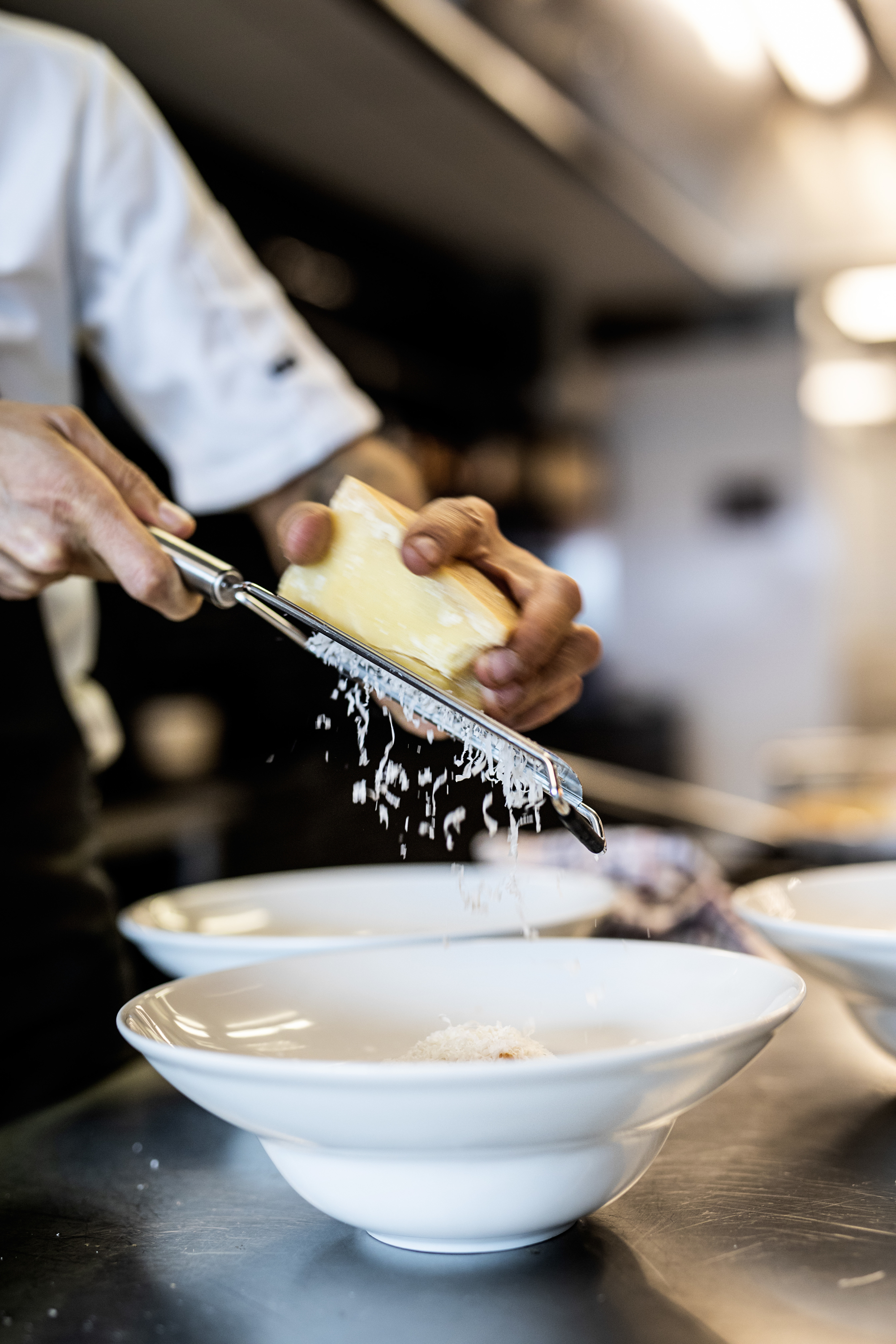 Også flere af køkkenets specialmaskiner er egen italiensk import, der er indpasset i køkkenets indretning, som konsulent Klaus Klinge fra BENT BRANDT har haft hånd i hanke med, lige som han formidlede kontakten til arkitekten bag indretningen af måske Danmarks flotteste familierestaurant.