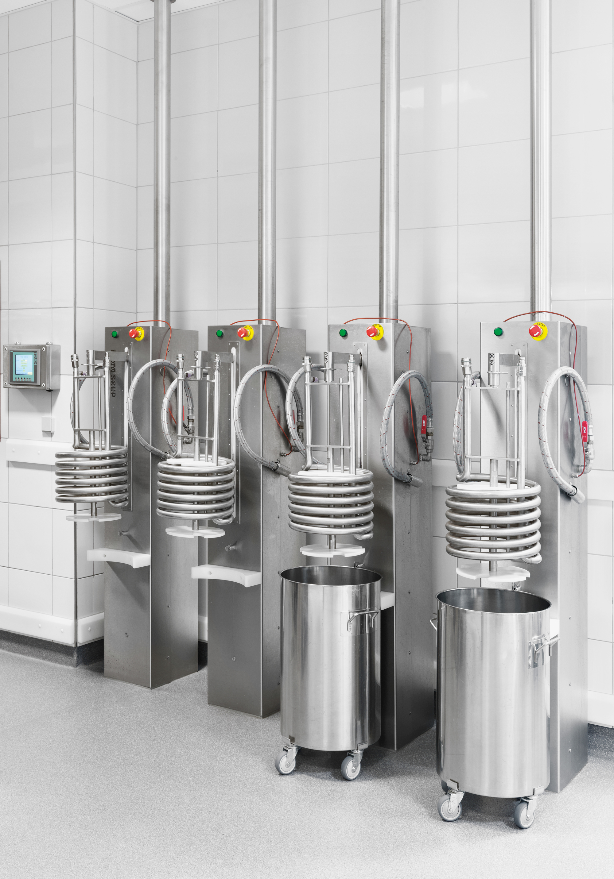 Kipgryderne er tilsluttet direkte til udportioneringsmaskinen.