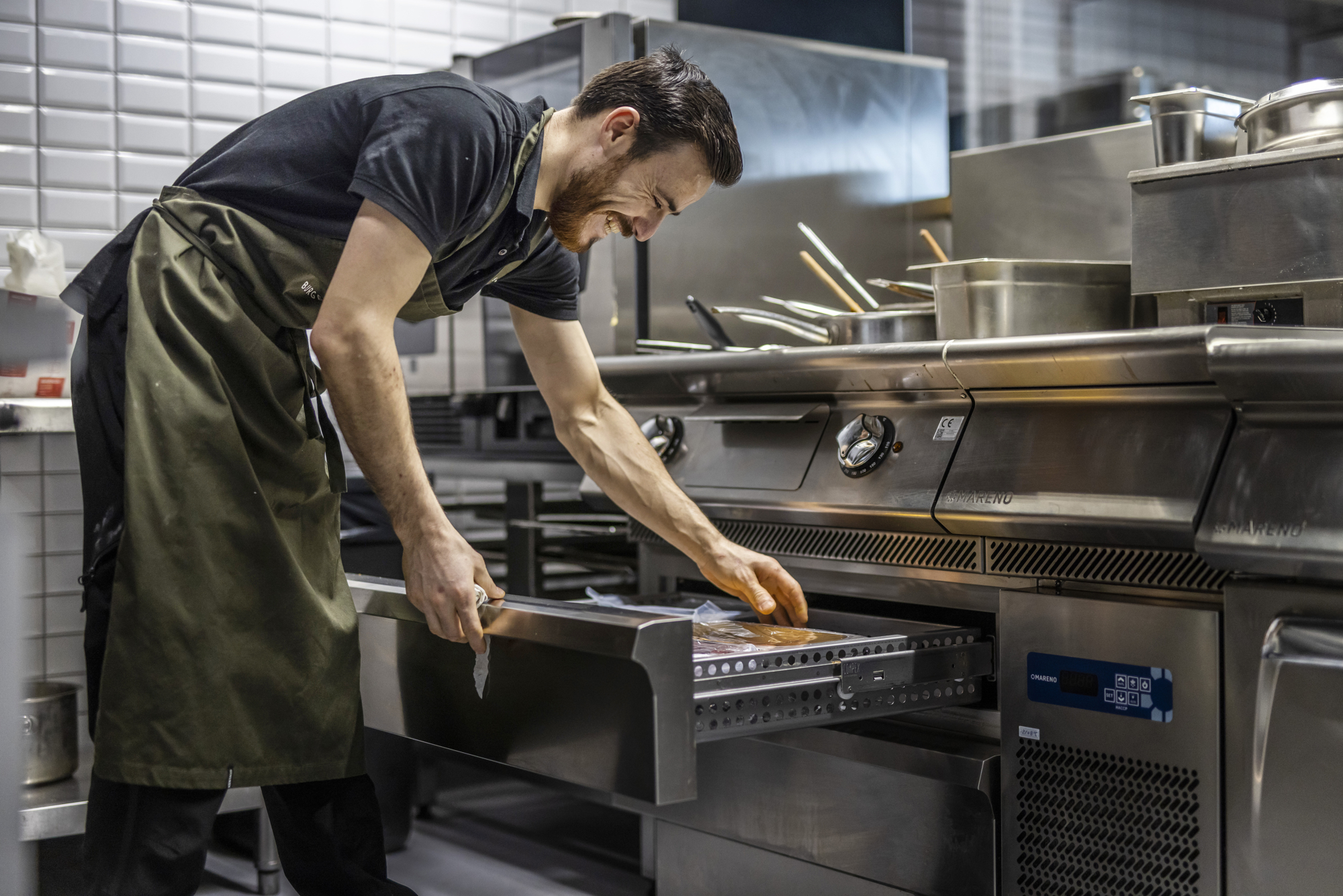 Events på pause betyder ikke, at stedet ikke kommer til at udvikle sig, for trods god plads til 500 gæster er der luft til endnu en håndfuld stadepladser og arrangementer med f.eks. spisestedernes lokale avlere og producenter. Og når solen varmer på havnefronten, er der plads til udendørs servering for yderligere 500. Det kræver noget af logistikken – og af opvasken. Stadepladserne har valgt individuel service, der for det meste samles i en fælles opvask bemandet med 2 HOBART opvaskemaskiner og 2 opvaskere.