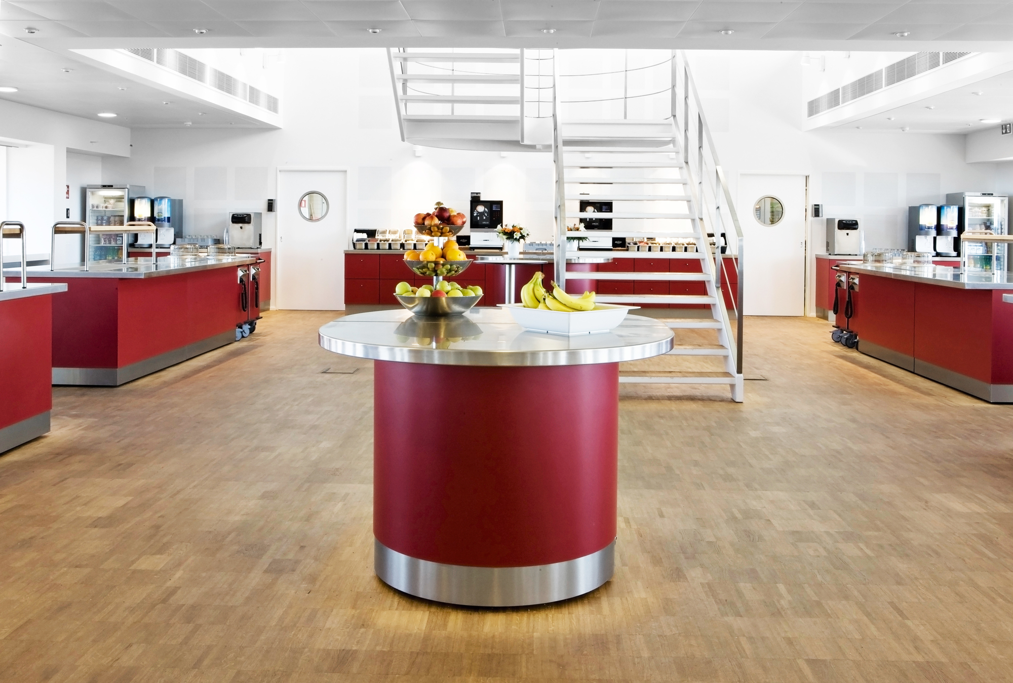 Buffeterne indeholder bl.a. bain-marie, køleplader, køle- og varmeskabe, og er udført helt i rustfrit stål indvendigt.