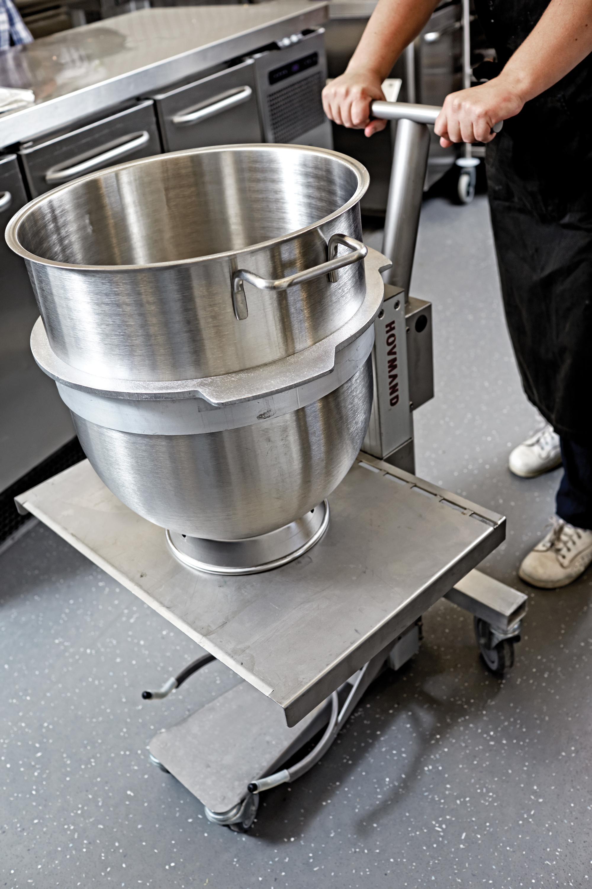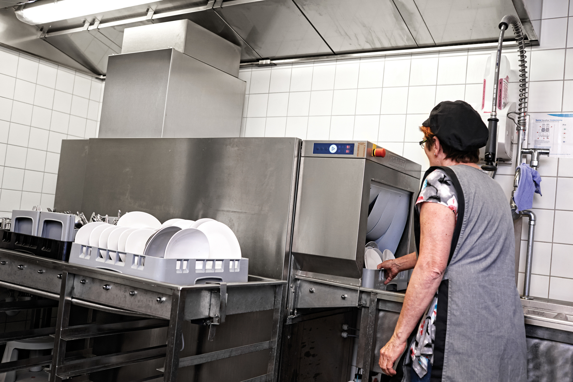 "I anretterkøkkenet bager vi brød i RATIONAL-ovnene og laver lettere tilberedning, og i rummet ved siden af har vi placeret en meget effektiv HOBART tunnelopvasker, så vi ikke skal transportere service frem og tilbage til produktionskøkkenet.