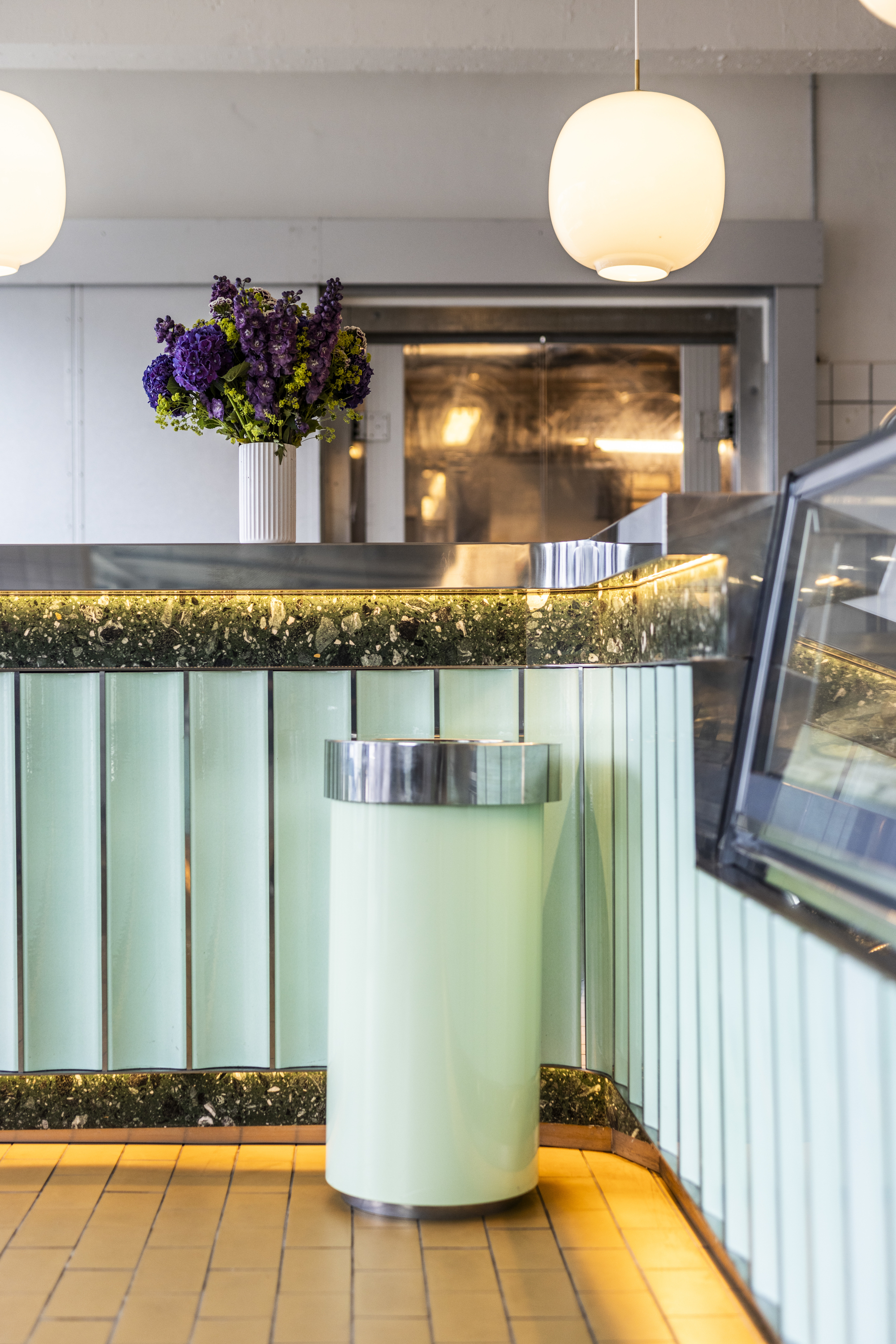 Det er Morten Chammon fra MM-Arkitekter, der har indrettet de 2 første isbutikker for Ismageriet, og han har også stået for den nænsomme renovering og indretning af de fredede lokaler i Kødbyen – inklusiv det endelige design af den markante, 15 meter lange isdisk, der er beklædt med unikke, bemalede lavasten fra Scicilien.