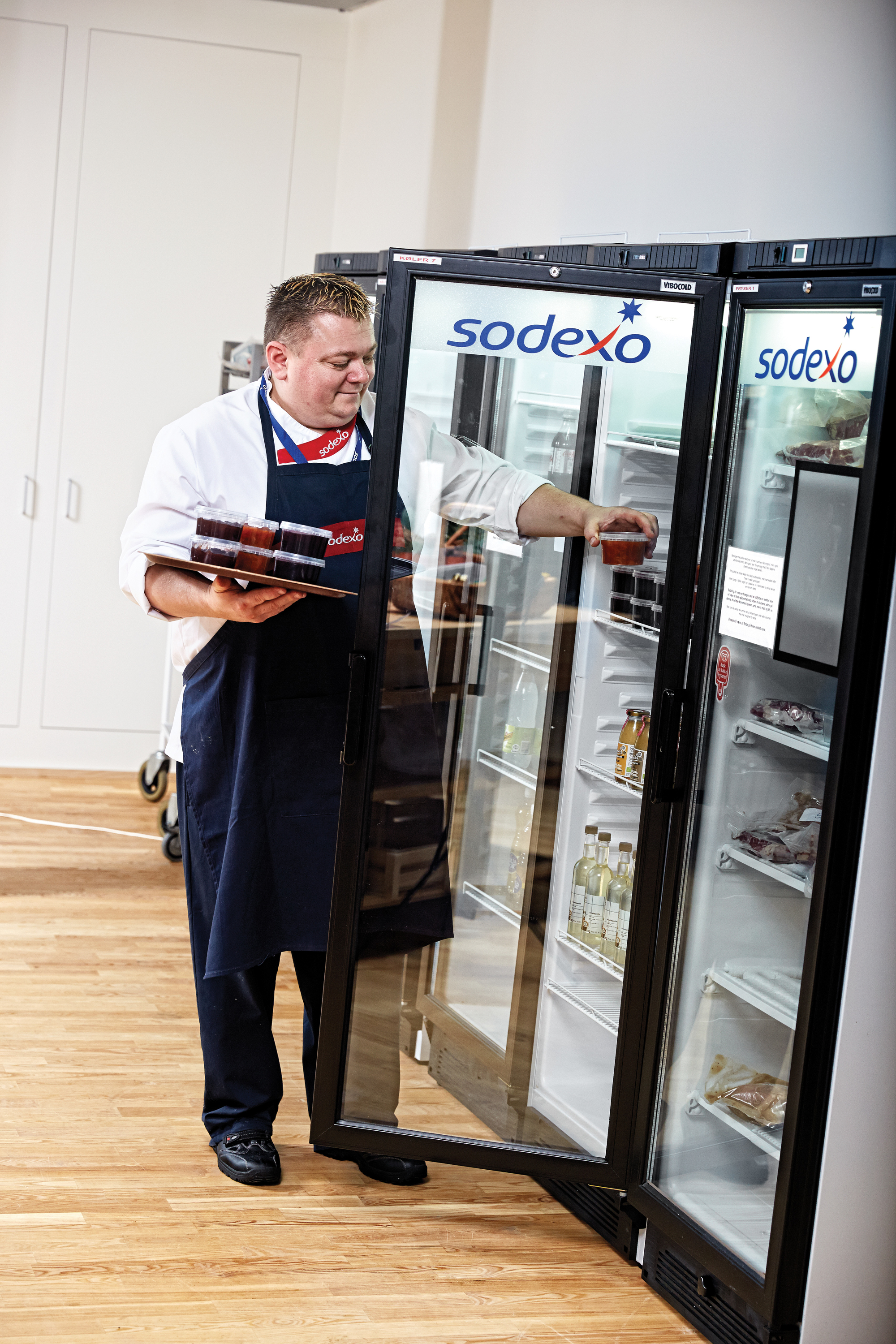 I fire køleskabe på række står dagens tilbud om take away, der er populært hos husets mange unge medarbejdere. Det kan være den varme ret fra dagens buffet eller nogle af buffetens tapas, der har erstattet mange fade på buffeten, fordi det giver mindre madspild og ser pænt ud under hele frokosten. Take away kan også være specialiteter, der annonceres på Sodexos intranet og på husets mange informationsskærme – stjerneskud eller bøffer f.eks. Der er drikkevarer inklusiv hjemmelavede safter, og så er der årets 4-retters nytårsmenu, som er en udsolgt succes i et antal på 200 couverter.