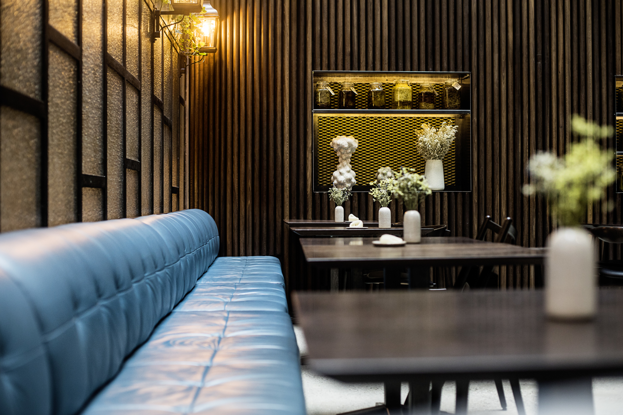 For netop kravene til at skabe en indretning, der kunne rumme en effektiv morgenbuffet for op til 200 personer og om aftenen være det intime og hyggelige rum for højgastronomi til 70 gæster var en udfordring, som den australskfødte køkkenchef satte sig for at løse.