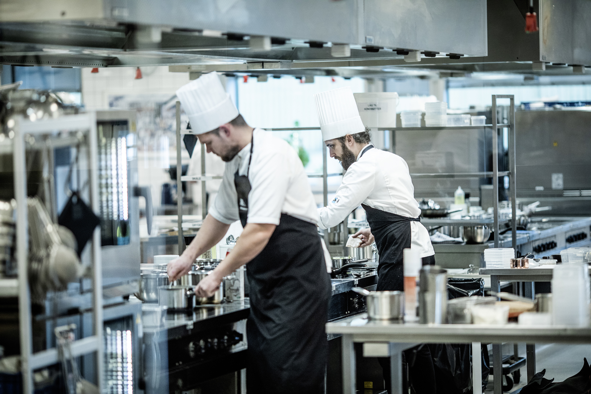 I køkkenet trænes samarbejdet mellem kokke og tjenere – et samarbejde, der er højt prioriteret på College360.