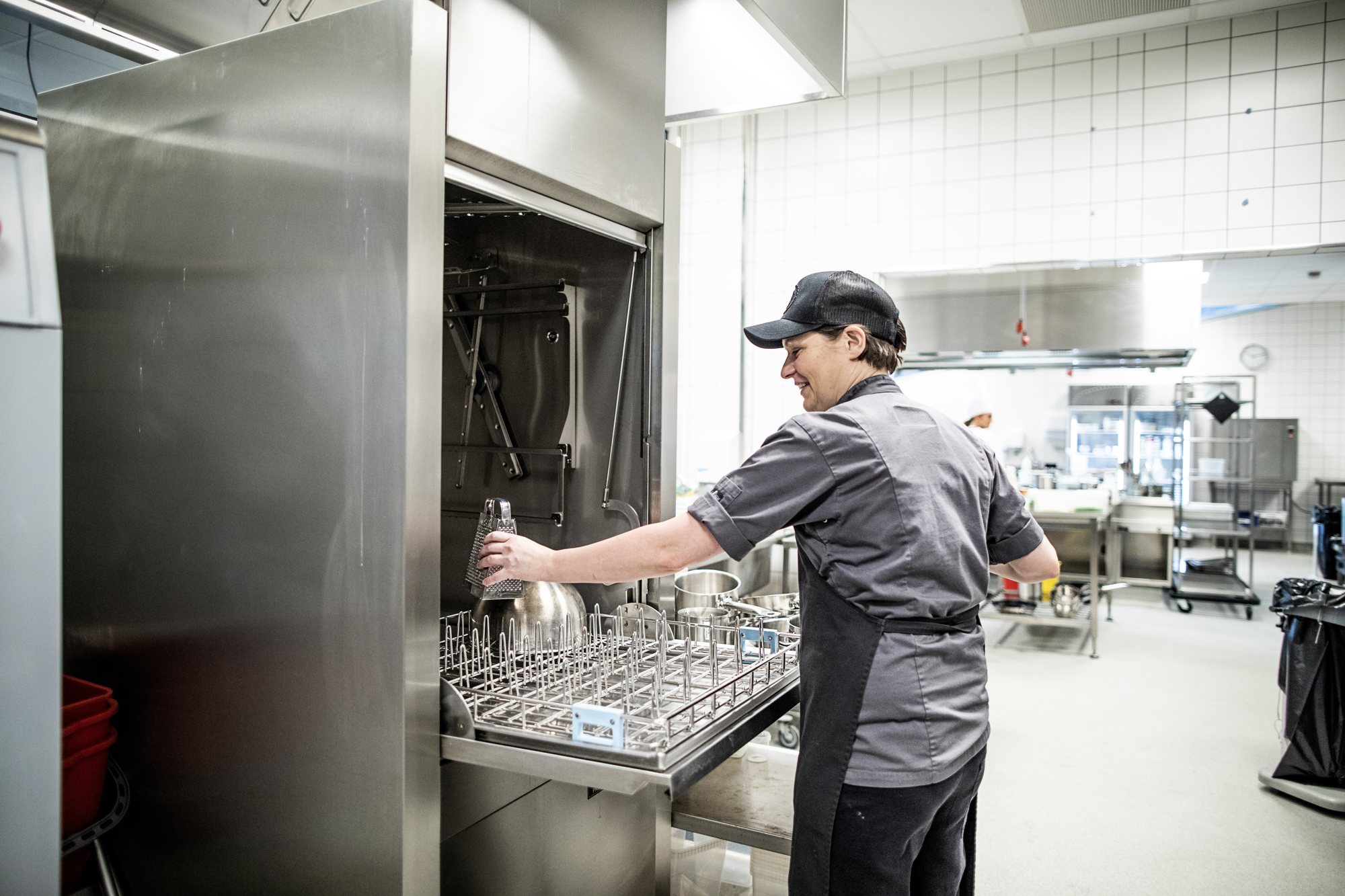 Det er da også en temmelig stolt uddannelsesleder, der viser rundt i de nye køkkenfaciliteter, som er resultatet af flere års grundig forarbejde. Torben Bastrup Nielsen fortæller: ”Fra foyeren kan man følge arbejdet i det store svendekøkken, der har 2 kogeøer som centrum. Hver ø er udstyret med 6 fladedækkende MKN-induktionskogeborde suppleret af RATIONAL SCC-ovne. Rundt om øerne og langs væggene er der arbejdsborde med håndvask, køle- og fryseskabe, borde med småmaskiner og varmholdningslamper – og god plads.”