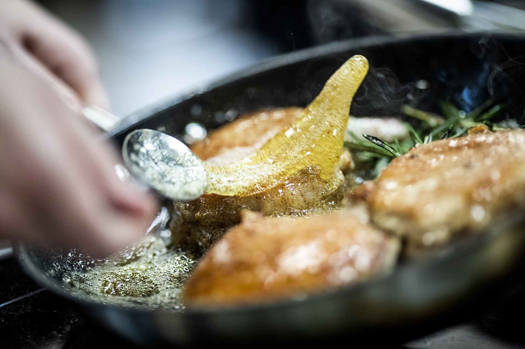 Derfor er det virkelighedens verden, der fra første dag møder eleverne på College360. Sidste år fik grundforløbseleverne til opgave at lave den officielle åbningsmiddag på Food Festivalen i Aarhus i samarbejde med en afsluttende kokkeklasse. En 3-dages tur til København omfattede besøg i køkkener, hvor der virkelig kræves noget – f.eks. på d’Angleterre og hos Rasmus Munk på Alchemist. Grundforløbseleverne er også i flere omgange i køkkenet sammen med alle afgangsklasserne, der er gode rollemodeller for, hvad der kræves ude i dagligdagen og til svendeprøven. ”For i den unge generation er der mange, der tror, man kommer let til tingene,” fortæller Kathrine. ”Og de skal forstå, at vores fag er et teamwork, der kræver disciplin og alle skal yde. Til gengæld er det jo også fag, hvor man i den grad kan nyde…”