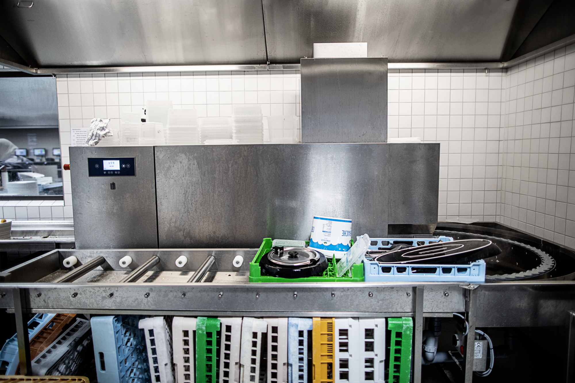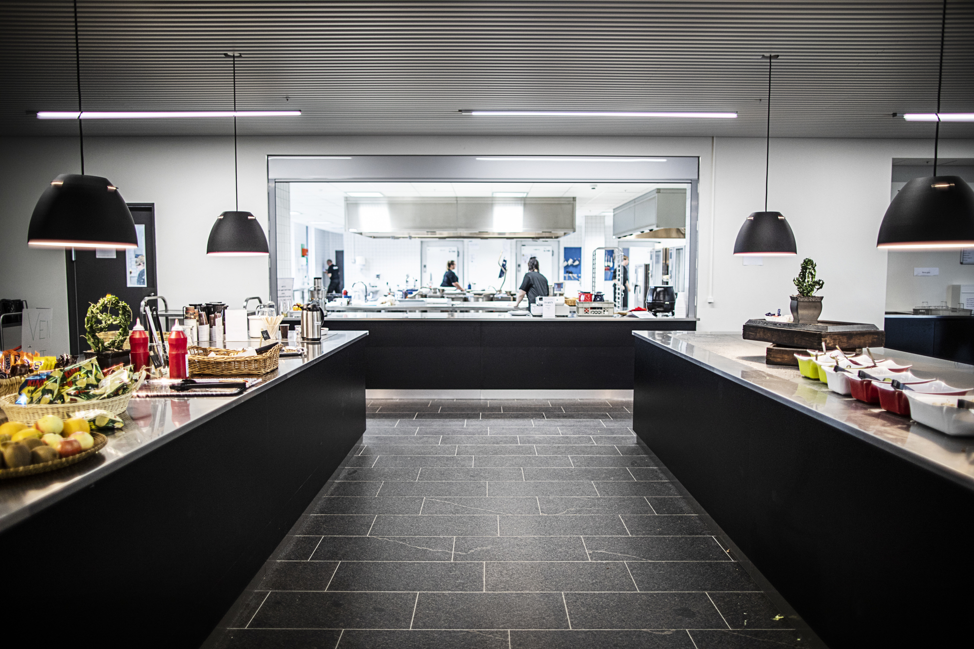 Det er da også en synlig glad og stolt uddannelses- og kantineleder, der viser rundt i de nye faciliteter. Ole B. Larsen har fået et 'superkøkken', som han kalder det, til kantineproduktionen, hvor arbejdet er synligt for gæsterne. Køkkenet kan også bruges til skolepraktik, men det er der sjældent brug for – der er nemlig rift om gastronom- og ernæringsassistenteleverne på Bornholm.