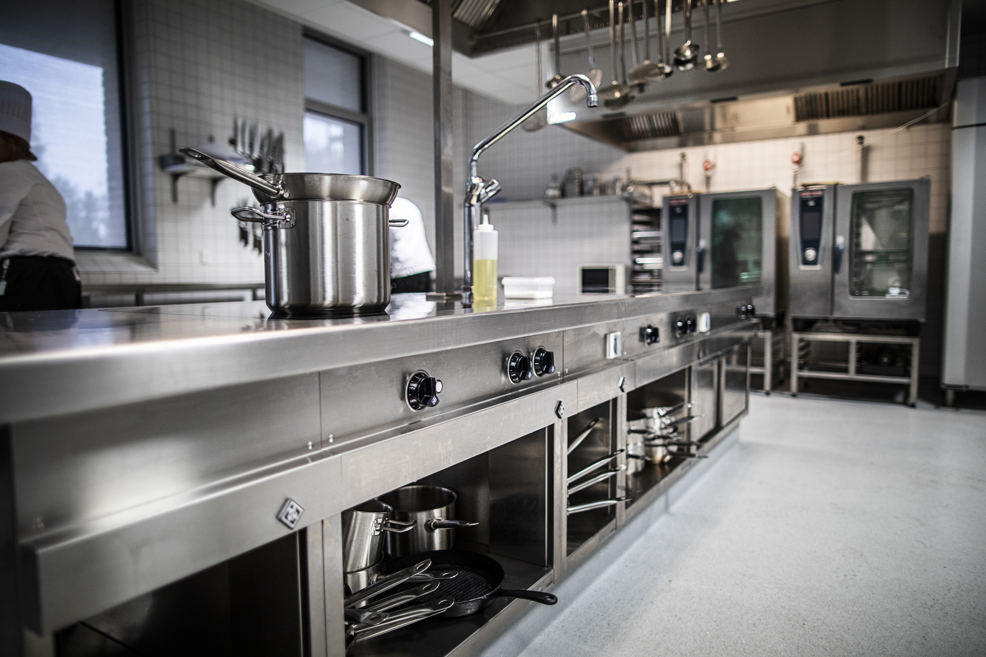 Lige bag kantinekøkkenet er undervisningskøkkenerne placeret. Dem er der 3 af plus et grøntkøkken, et bageri, en opvask og et røgeri på vej.